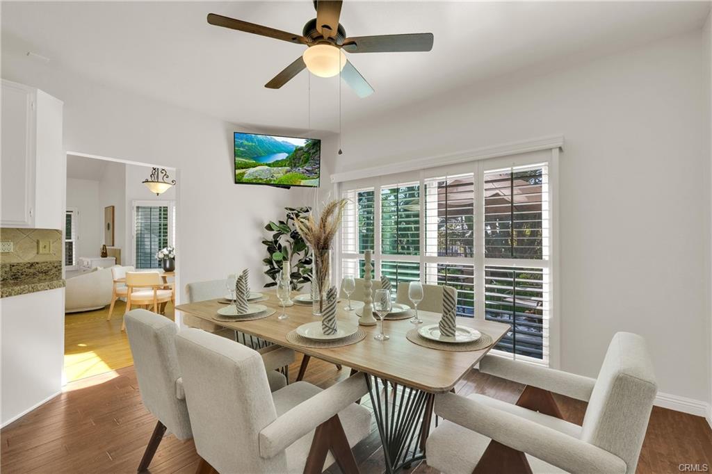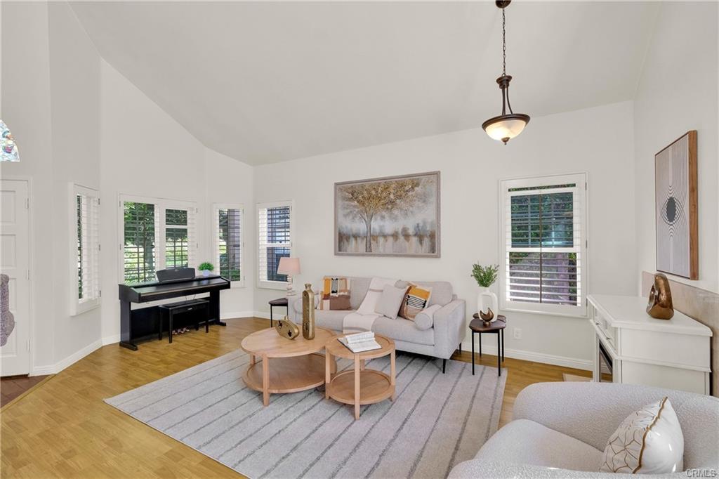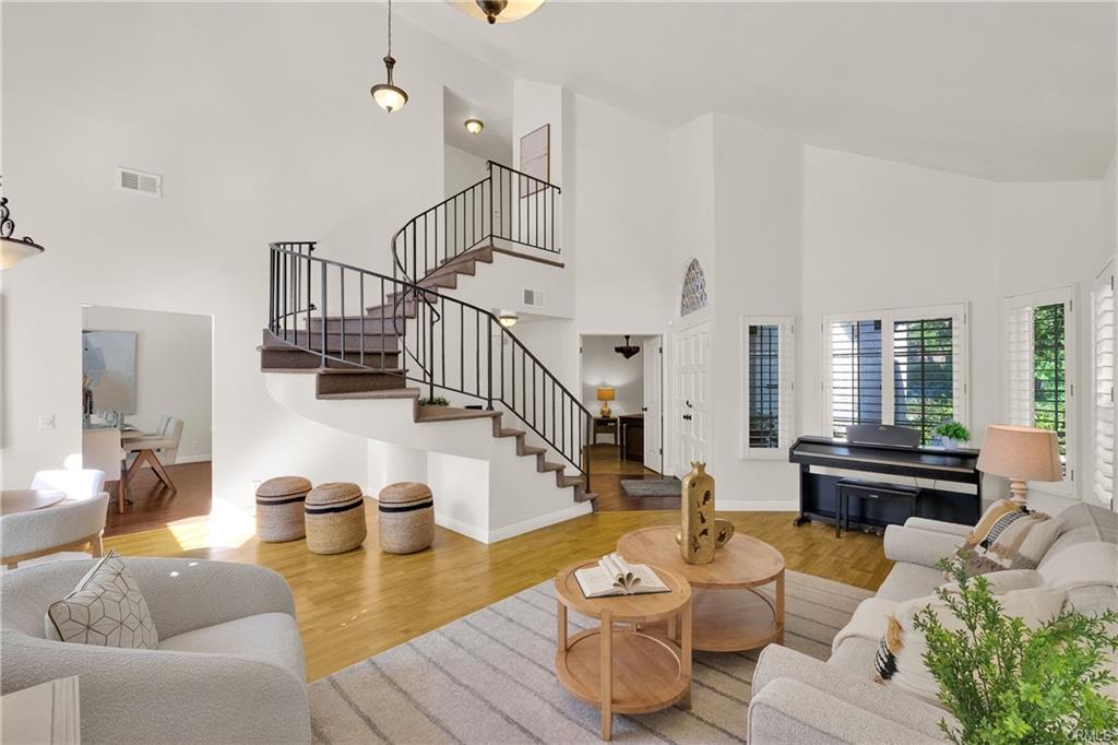 Nestled in the lush hills of Via Verde, surrounded by million-dollar homes, this stunning 4-bedroom, 2.5-bath San Dumas home is located in the exclusive Villas at Rancho Via Verde community. Set on a quiet, secluded cul-de-sac, the property is enveloped by greenery, offering a serene atmosphere. As you step through the front door, you’re welcomed by soaring vaulted ceilings, abundant natural light, and neutral tones. The home features separate living and family rooms, with hardwood floors downstairs and carpet upstairs, complemented by a beautiful spiral staircase and fresh professional interior painting. The downstairs office can serve as a 4th bedroom. The upgraded kitchen boasts granite countertops and stylish cabinets. Recent upgrades include dual-pane windows, a sliding door, wood shutters with a lifetime warranty, a new water heater, a water softener, and more. The charming backyard, surrounded by trees and shrubs, offers a garden and a pleasant neighborhood view. HOA benefits include insurance on the exterior structure, roof repair/replacement, earthquake insurance, common area maintenance, scheduled exterior painting and roof updates, as well as regular termite inspections and exterior damage repairs. RV parking is available for $35 per month. The exterior of the house was freshly painted, and the roof power-washed by the HOA in 2024. Located in the highly-rated Bonita School District, the home is close to several parks, Frank G. Bonelli Regional Park, the 57/210/10 freeways, dining options, Costco, and Trader Joe’s. Priced to sell—don’t miss this opportunity!