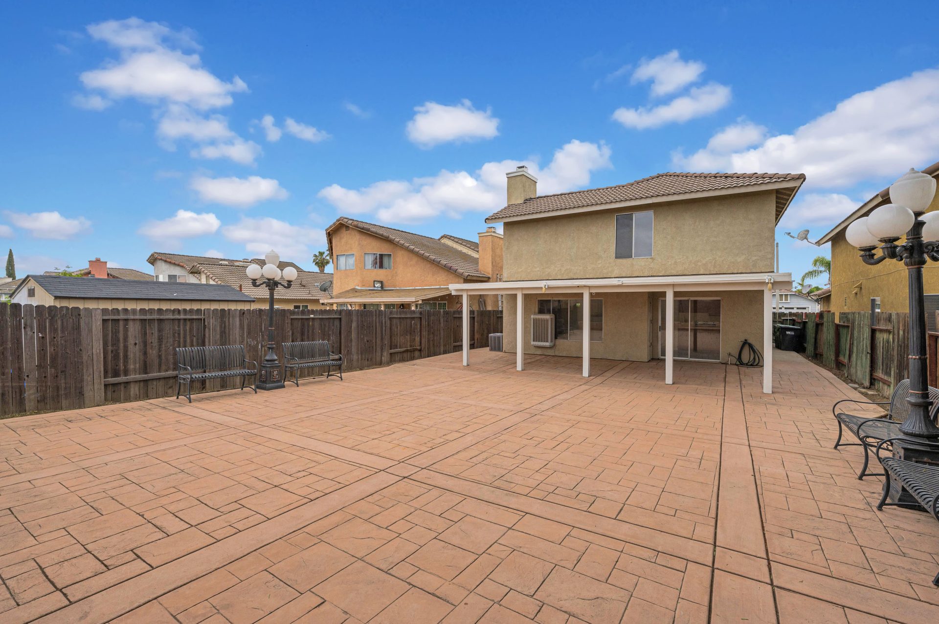Welcome to this cozy two-story home nestled in a peaceful community in Moreno Valley—ideal for first-time homebuyers or investors. Featuring 3 bedrooms and 2.5 bathrooms, this home also offers an additional downstairs room that can serve as a 4th bedroom, office, or playroom, along with a convenient half bathroom for guests. Enjoy the spacious and beautifully designed backyard with a large covered patio, stone-paved ground, flower planters, elegant outdoor benches, lampposts, mature trees, and a block wall for added privacy. It’s a perfect setting for family gatherings, relaxing after a long day, or even building an ADU. The home has been recently updated with professional interior and exterior painting, including the patio and wooden eaves. Conveniently located within walking distance to local elementary and middle schools. Just a short drive to parks, shopping centers, Home Depot, Walmart, gas stations, coffee shops, restaurants, March Field Park, and the John F. Kennedy Veterans Memorial Park. Don’t miss this opportunity—come see it today! Homes like this don’t stay on the market for long.