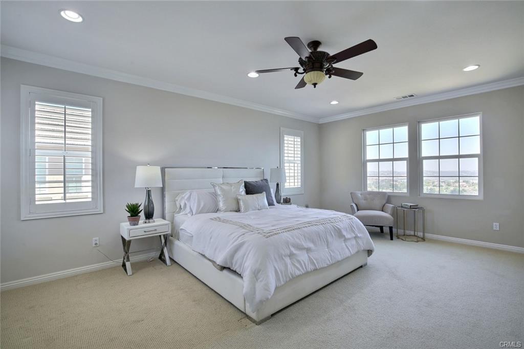 VIEW, VIEW, VIEW!!! 270 Degree Panoramic View in the Prestigious Three Oaks Community in Walnut with unobstructed city light and snow capped mountain, hillside canyons and breathtaking sunset VIEWS. This exquisite estate located at a private & quiet end of cul-de-sal. It features 4 bedrooms and 3.5 bath: 2 master suite that 1 downstairs and 1 upstairs, 1 powder room downstairs for the guests and two decent size bedrooms upstairs with a full hall bath. It also features a library/office, living room, family room, formal dining room two large loft upstairs can be used for office/playroom/gym etc. Gourmet kitchen with stainless built appliances, granite countertop, additional separate kitchen custom added by owner great for Chinese style cooking. Family room open to the kitchen and accessible to the backyard with a fireplace. Upstairs luxury master bedroom suite features a huge walk-in closed, Jacuzzi bathtub and walk-in shower, double sets of dresser vanity. Tankless water heater, hardwood flooring throughout downstairs, double pane windows and doors. 3 car garage. Professional landscaped front and backyard with large covered patio and built-in BBQ island, lawn and fruit trees, it is great place to entertain family members and friends overlooking all the views and gorgeous sunset! Easy access to major Freeway, shops, restaurants and trails. Come and experience this charming neighborhood for yourself.