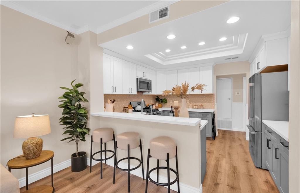 Nestled in the lush hills of Via Verde and surrounded by million-dollar homes, this stunning 3-bedroom, 2.5-bath residence is located in the highly sought-after gated community of Bel Vintage in San Dimas. Set on a quiet and secluded cul-de-sac, the property is embraced by greenery, creating a peaceful and private atmosphere. As you step inside, you’re greeted by soaring vaulted ceilings, abundant natural light, and elegant neutral tones. The home offers separate living and family rooms, featuring beautiful wood floors downstairs, cozy carpeting upstairs, and a graceful spiral staircase. Fresh professional interior paint enhances its bright and inviting feel. The recent upgraded kitchen showcases sleek quartz countertops, modern cabinetry, and quality finishes with all new appliances. Recent improvements also include remodeled bathrooms, luxury vinyl plank flooring on the main level, and more thoughtful updates throughout. The charming backyard—surrounded by mature trees and lush landscaping—offers a garden and pleasant neighborhood views, perfect for relaxation or entertaining. HOA benefits include exterior structure insurance, roof repair and replacement, common area maintenance, scheduled exterior painting and roof updates, as well as regular termite inspections and exterior repairs. Located within the excellent Bonita Unified School District, this home is close to scenic parks, Frank G. Bonelli Regional Park, major freeways (57/210/10), popular dining, Costco, and Trader Joe’s. Priced to sell—don’t miss this rare opportunity to own a beautiful home in the heart of Via Verde!