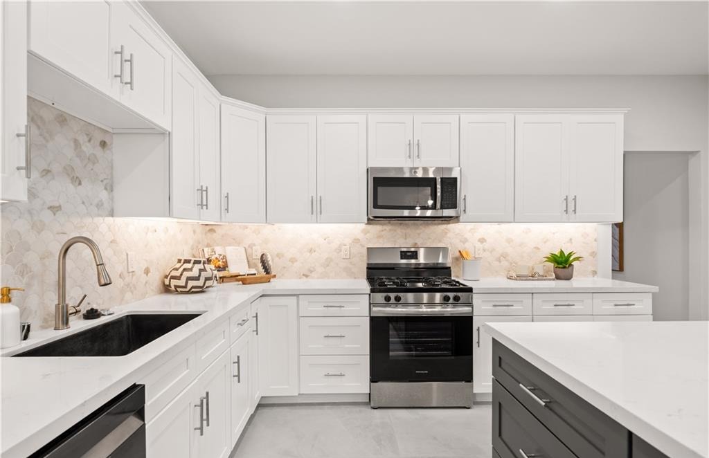 Fully renovated single-story ranch home located on a quiet cul-de-sac in a prime Rowland Heights neighborhood. This move-in ready property offers 5 bedrooms, an office, and 3.5 bathrooms, ideal for multigenerational living or rental income potential. Features include double-door entry, spacious living room with fireplace, separate family room with second fireplace, and an open gourmet kitchen with white cabinetry, stainless steel appliances, and quartz countertops. Spanish architectural details throughout. Includes two master suites plus three additional bedrooms. One oversized master suite offers a studio-style layout with its own living area and separate entrance, suitable for extended family or rental use. Both master suites feature large windows with views of the backyard greenery. A private office near the front entry includes a large window overlooking the peaceful neighborhood. Situated on a large, flat, and usable lot with ADU potential. Gated front yard and oversized paved driveway provide ample parking for multiple vehicles and RV parking. Located within Rowland Unified School District, within walking distance to Blandford Elementary School, HK Market, shops, restaurants, and parks. Upgrades in past 2 years include: •new kitchen • all new bathrooms •new windows/doors • new tile flooring • repiping • new electrical wiring • tankless water heater • LED lighting, approx • 70% roof replacement • new security alarm system with monitoring •Interior & exterior painting • new garage door.