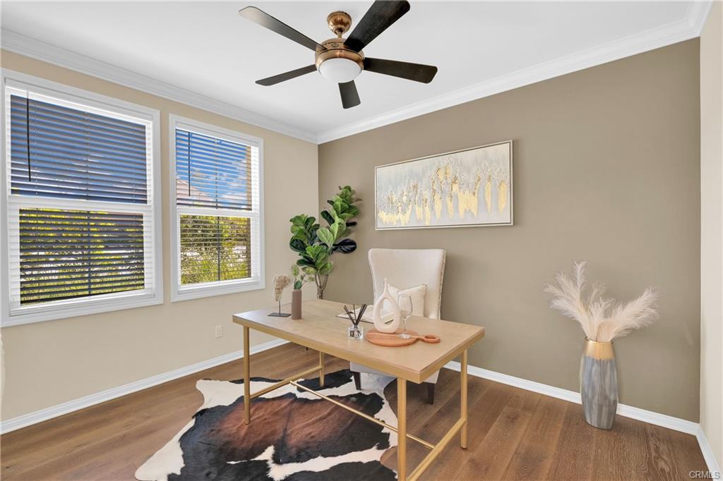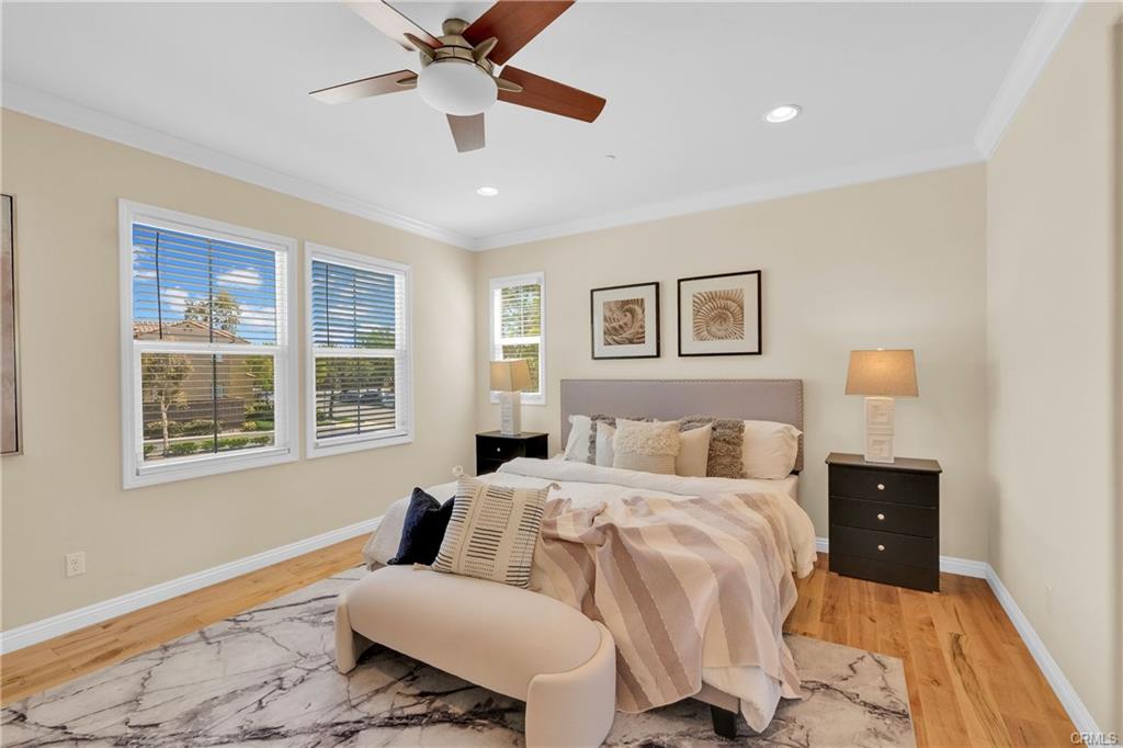Stunning, fully upgraded contemporary 2-story home in the prestigious Blackstone Community in Brea, is ready for you to move in! This exquisite 4-bedroom, 3-bathroom residence, constructed in 2014, showcases up to $200K in luxurious upgrades. Step through the charming front entrance into a seamless flow between the sophisticated family room, dining area, and kitchen. The modern kitchen boasts granite countertops, stainless steel appliances, including a built-in microwave and oven, a 5-range gas stove, and an oversized island with pendant lighting and walk-in pantry, ideal for both seating and storage. Upgrades abound, featuring wood floors, window shutters, crown molding, ceiling fans and recessed lighting. The fully upgraded, spacious master suite offers dual sinks, a separate soaking tub and shower, tile flooring, and walk-in closets with organizers. Additionally, the upstairs hallway has been enhanced with an office desk, countertop, and cabinets. Enjoy the benefits of a paid-off solar system, as well as a backyard oasis with a built-in BBQ, paved tiles, and professionally landscaped grounds that are both low-maintenance and inviting for entertaining. The garage has also been upgraded with epoxy flooring and closets, plus Tesla charger. Conveniently located within walking distance to Blackstone Community amenities, parks, walking trails, playgrounds, and pool/spa facilities. Situated within the award-winning Brea Olinda Unified School District and close to shopping, restaurants, and freeway access.