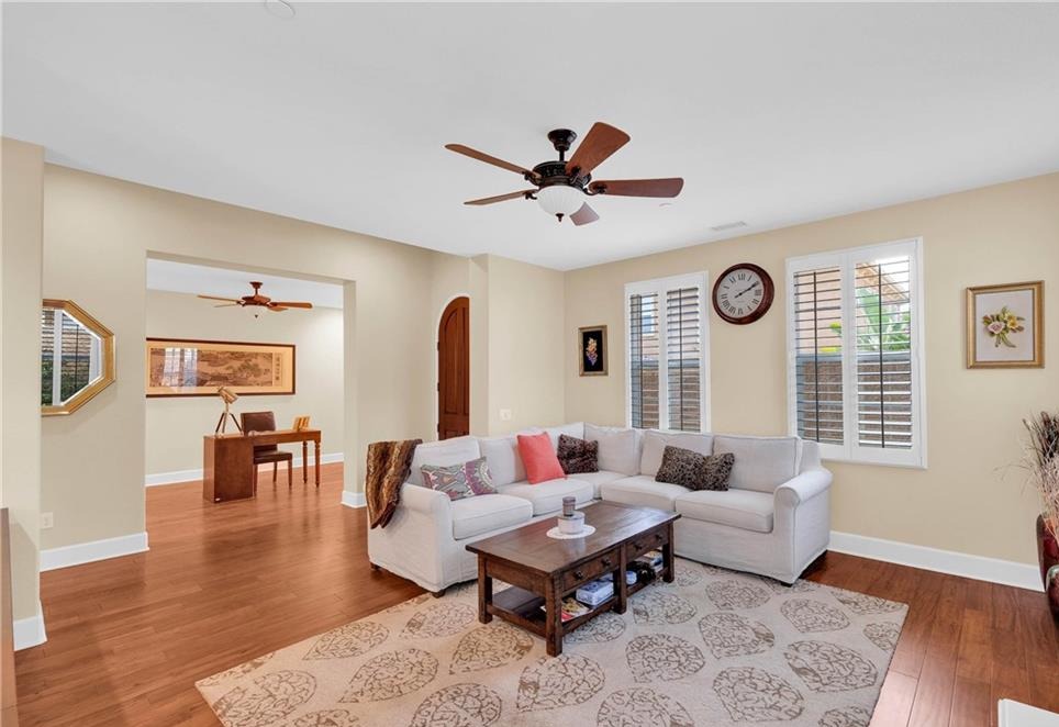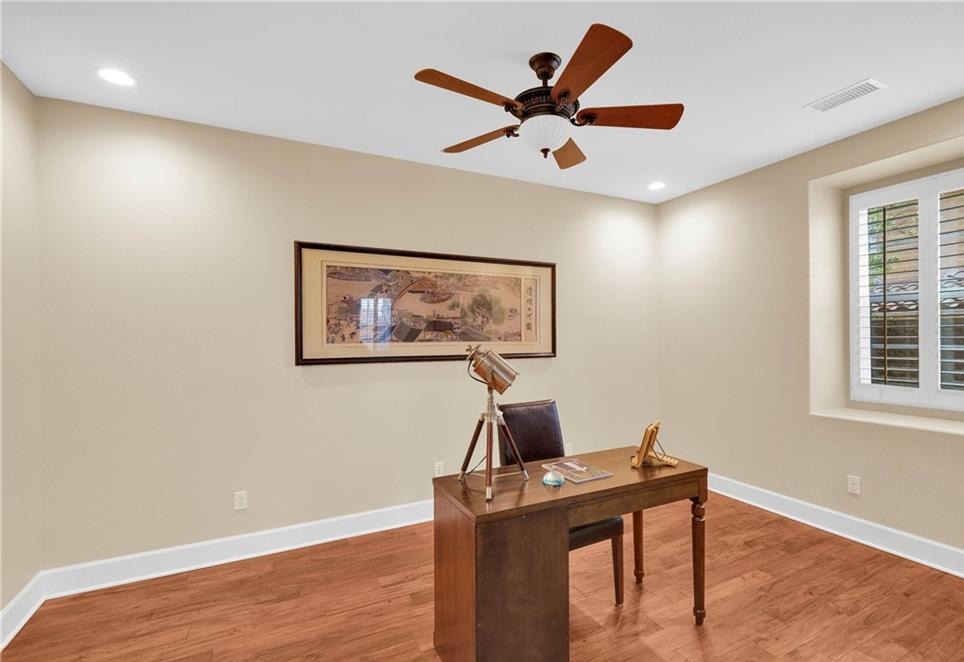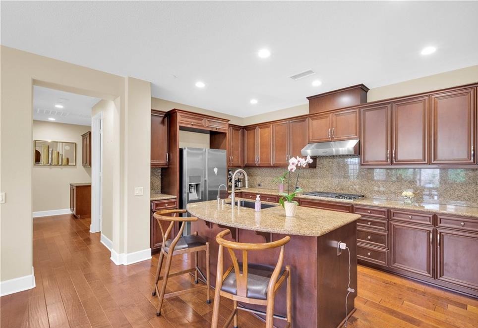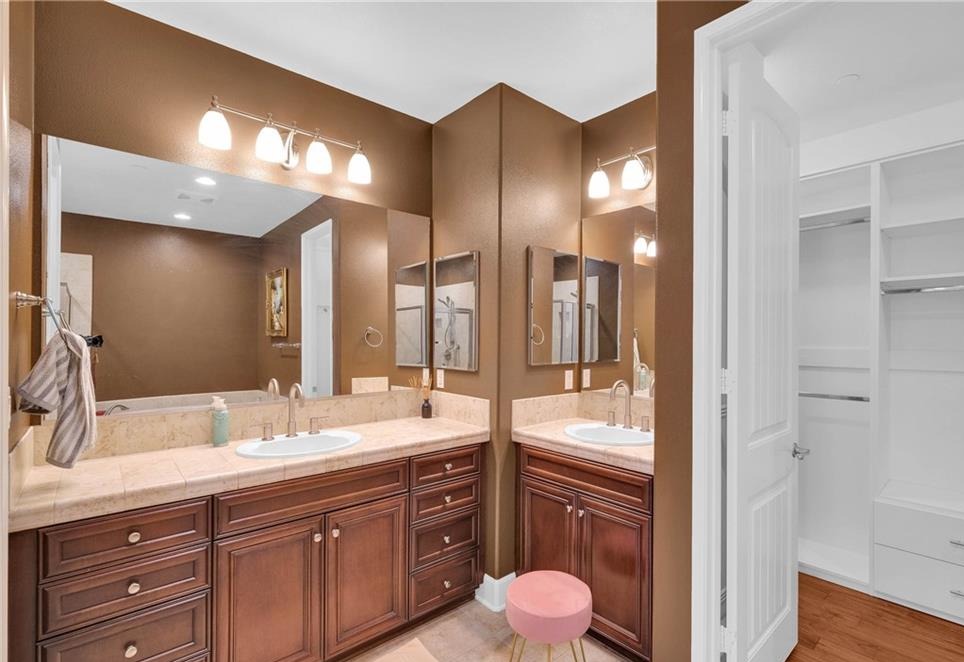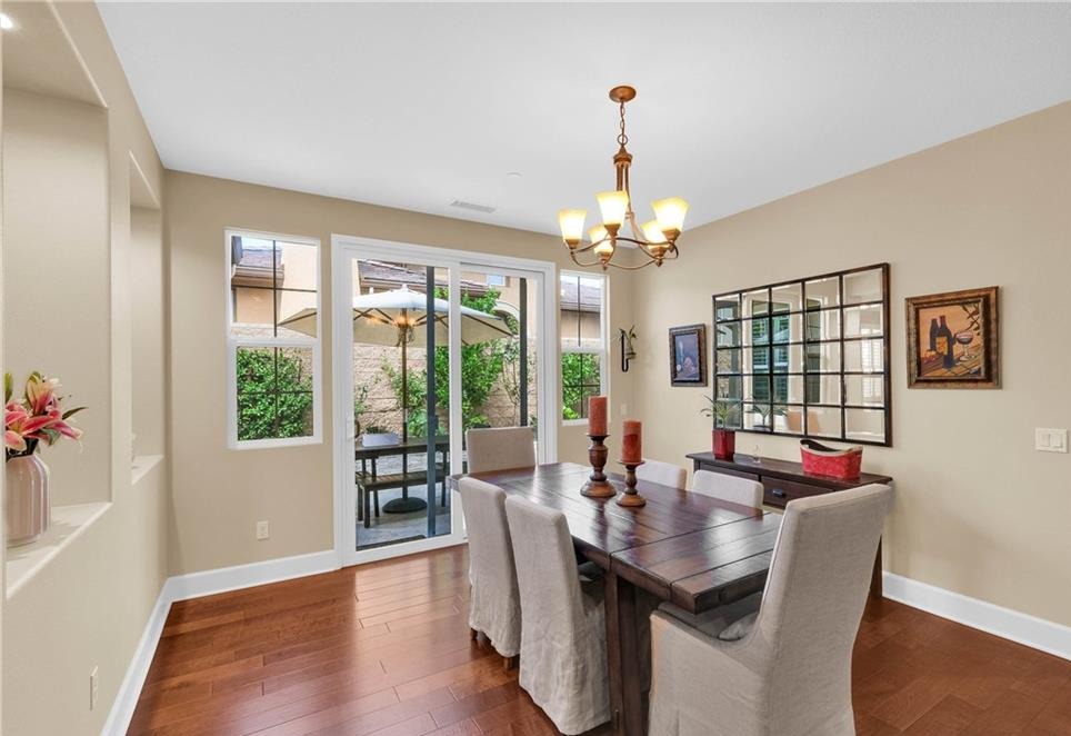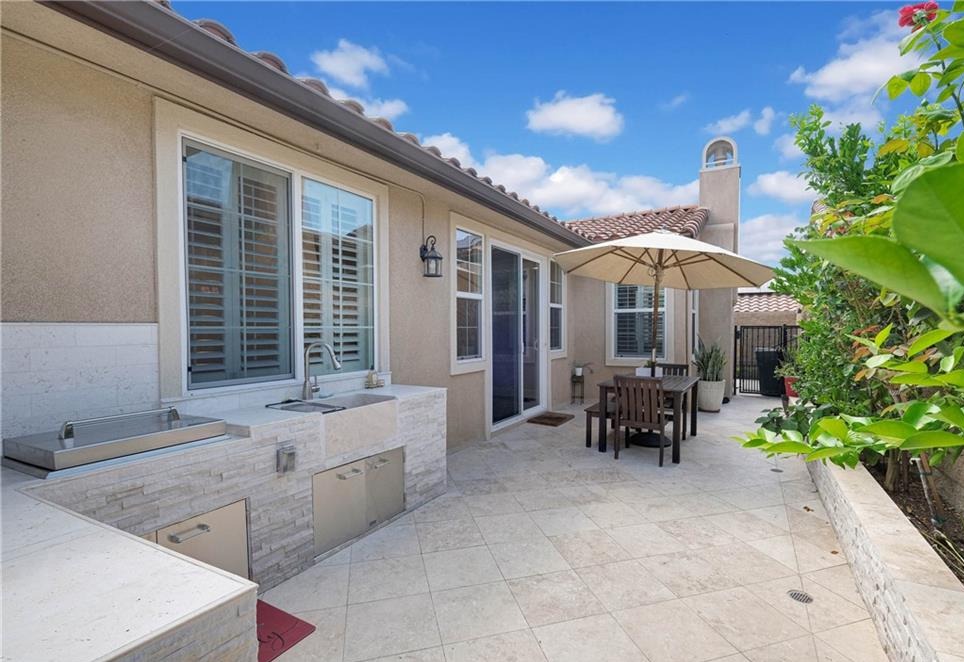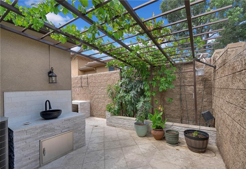 Immaculate Single-Story Home in Prestigious Villagio Community. Welcome to this beautifully maintained, private, single-story town home located in the heart of Yorba Linda’s sought-after Villagio community. Surrounded by top-rated schools and miles of scenic horse and walking trails, this 1,714 sq. ft. residence combines elegance, comfort, and convenience. Step inside to soaring ceilings, crown molding, and gorgeous hardwood flooring throughout. The versatile floorplan offers 3 bedrooms (one currently used as a den/office without a closet) and 2 bathrooms. The chef’s kitchen is a showstopper, featuring granite countertops with full backsplash, center island with bar seating, tremendous cabinet space, and premium stainless-steel appliances—including GE refrigerator, double ovens, gas cooktop, microwave, and dishwasher. Entertain with ease in the formal living room with fireplace, adjoining dining area, and optional den/office that could easily serve as a third bedroom. The primary suite offers a walk-in closet, private sliding glass door to the backyard, and a spa-like bathroom with dual vanities, soaking tub, and separate shower. Additional highlights include a convenient inside laundry room with sink and cabinetry, a newly upgraded AC system, and updated faucets in all bathrooms. Enjoy the functionality of two single-car garages, both upgraded with epoxy flooring—one with direct home access and the other with a private door to the backyard. The outdoor living space is designed for both entertaining and everyday relaxation, featuring a custom outdoor kitchen with sink, prep counter, stainless-steel storage and fireplace. Stone accents, tiled flooring, raised planters with fruit trees, and a spacious dining area with umbrella create a seamless extension of the home. Community HOA dues ($310/month) include use of the sparkling pool and spa, plus exterior home maintenance—including roof, paint, and termite coverage. With no Mello-Roos and award-winning Placentia-Yorba Linda schools (Mabel Paine Elementary, Yorba Linda Middle, and walking distance to Yorba Linda High), this home truly has it all.