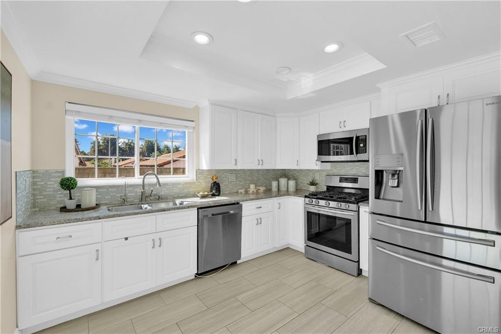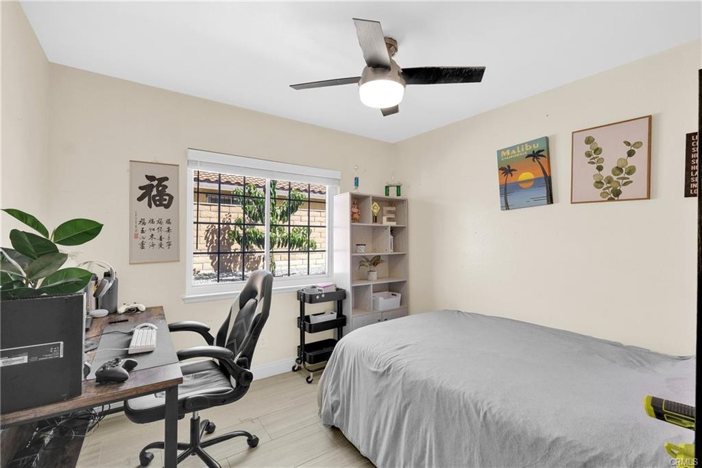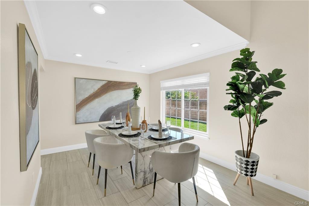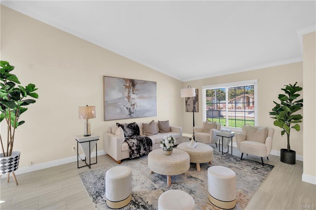 Welcome to this stunning single-story, upgraded turnkey home located in the highly desirable area of Walnut. This residence offers 4 bedrooms and 2 baths, featuring an open floor plan that creates a bright and airy living space. The living room boasts a high vaulted ceiling, enhancing the sense of spaciousness. Adjacent to the living room is a dining area, perfect for hosting family gatherings and dinner parties. The upgraded kitchen features white cabinets, granite countertops, a tiled backsplash, and stainless steel appliances. It opens to a cozy family room complete with a fireplace and a sliding door that provides easy access to the backyard. The spacious master bedroom includes a walk-in closet and French doors that lead to the backyard, offering a peaceful retreat. Three additional bedrooms and a full bathroom complete the living area, providing ample space for family or guests. The beautifully landscaped front and backyards include grassy areas, flower planters, and seating spaces. The expansive front, back, and side yards offer potential for extending the living space or adding a pool. The upgrades include the kitchen, bathrooms, flooring, AC system, water softener, drinking water filter, and more. This home is within walking distance of the award-winning Stanley G. Oswalt Academy (K-8) and is conveniently located near supermarkets, parks, the library, and major freeways. Don’t miss the chance to see this exceptional home—it won’t last long!
