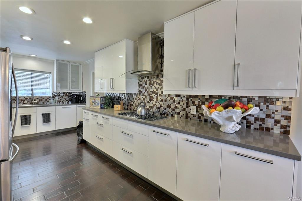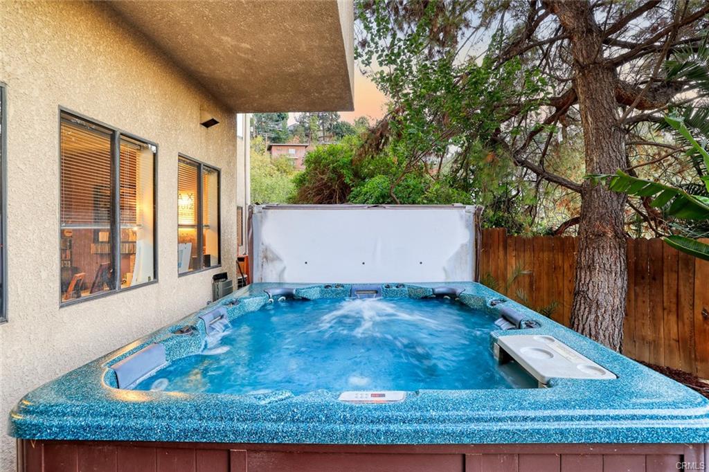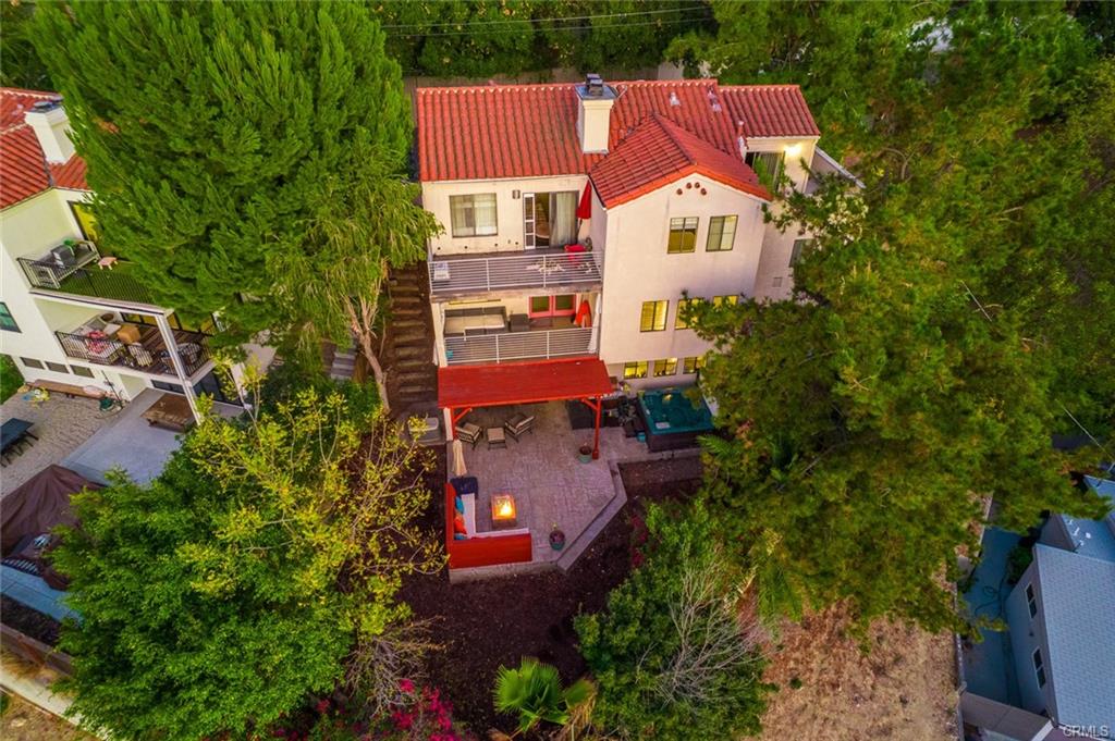 Huge Mediterranean-style villa w/views in the foothills of Montecito Hts! Easy walk to park w/hiking trails & hilltop lake w/views to downtown LA. Circular drive, 2-car attached garage. Modern spacious interiors w/dual L/R-D/R fireplace, French-doors to main floor balcony w/picturesque hillside views, newly upgraded kitchen with quartz counter tops and new contemporary cabinets, large pantry & tray ceiling. lovely dining area adjacent to the kitchen overlooking the views. newly upgraded baths with quartz counter top and new vanities, the powder room features octagonal window. 3 bedrooms upstairs include master suite w/12ft vaulted ceiling, romantic fireplace, private balcony with scenic views, walk-in closet, dual sinks & oversized soaking tub & shower combo; BR2 has vaulted 10ft ceiling, walk-in closet & sliding door to shared view balcony; BR3 is large, has 2 closets, great views & balcony access; 1st floor has large 4th bedroom accessible to the backyard, and a spacious bonus room could be used as 5th bedroom, playroom, or office which can access to the backyard, a newly upgraded full bath on the first floor, lots of closet storage space, copper plumbing, central HVAC. Backyard has a cement pad, wood pergola, custom bench with a fire pit and jacuzzi, & beautifully landscaped yard w/sprinklers, front & back. Priced to sell, please be hurry before it is gone!